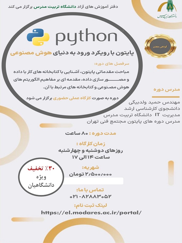 دفتر آموزش های آزاد برگزار مینماید: پایتون با رویکرد ورود به دنیای هوش مصنوعی